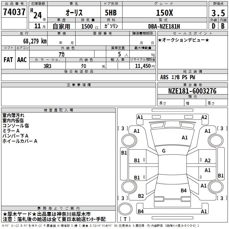 TOYOTA AURIS 150X - лот 74037
