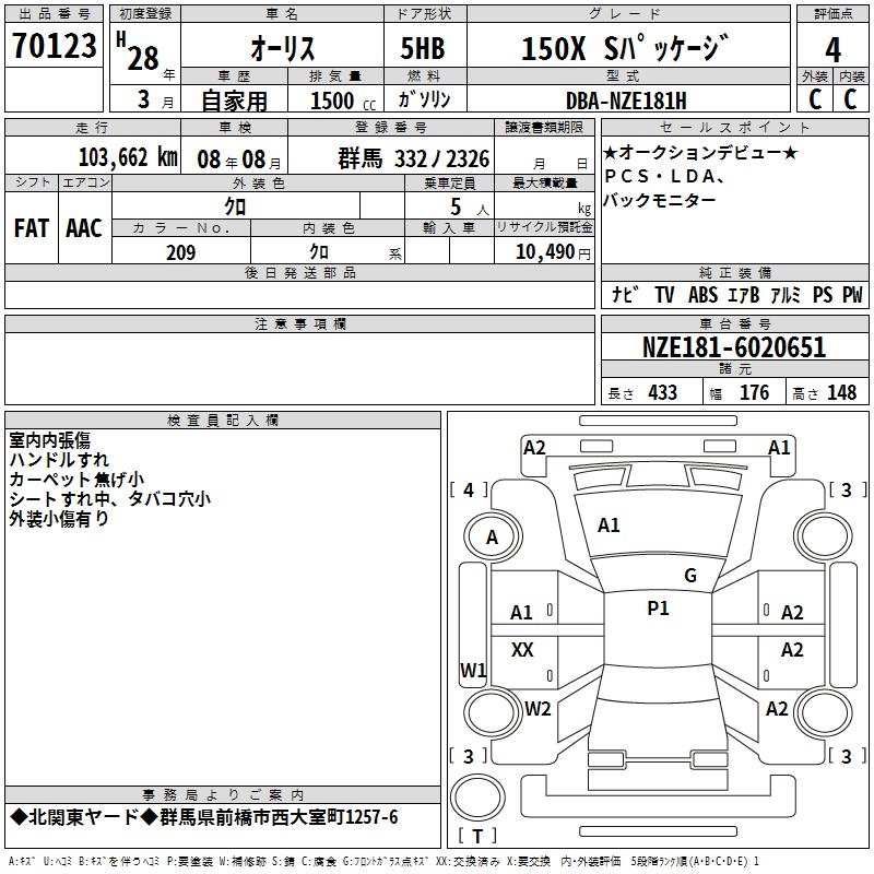 TOYOTA AURIS 150X S PACKAGE - лот 70123