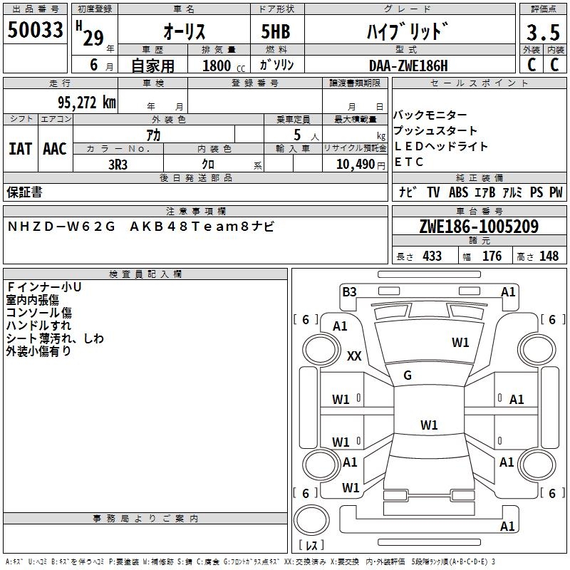 TOYOTA AURIS HYBRID - лот 50033