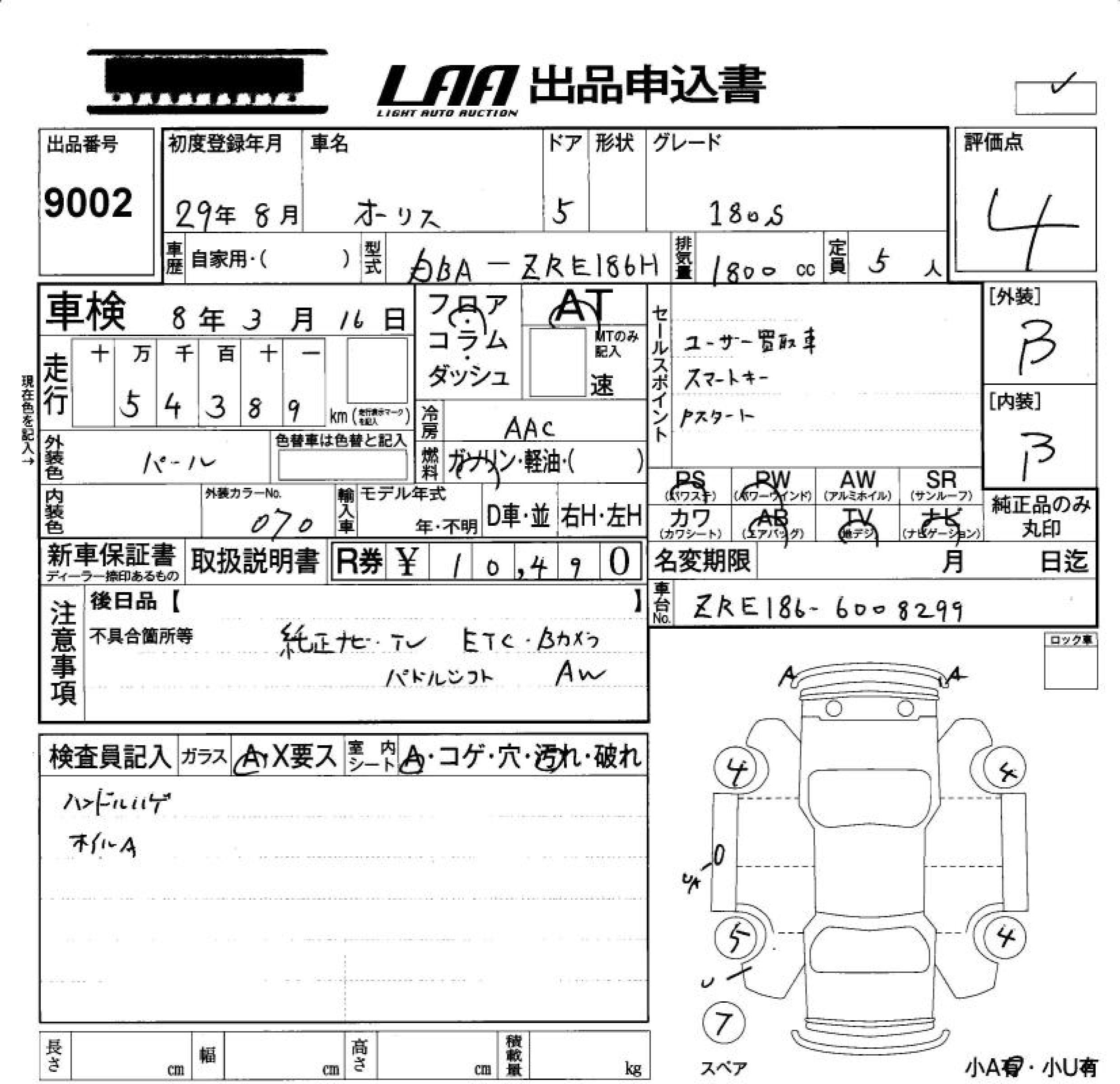 TOYOTA AURIS 180S - лот 9002