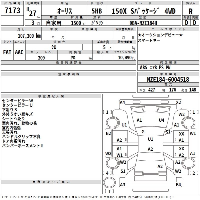 TOYOTA AURIS 150X S PACKAGE 4WD - лот 7173