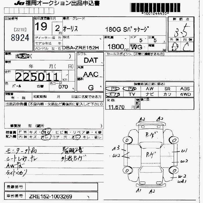 TOYOTA AURIS 180G S PACKAGE - лот 8924