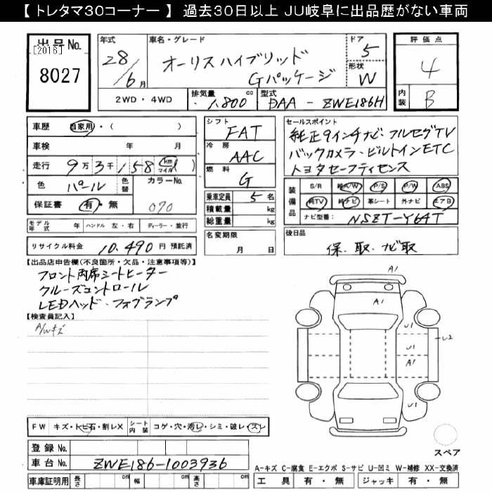 TOYOTA AURIS HYBRID G-PKG - лот 8027