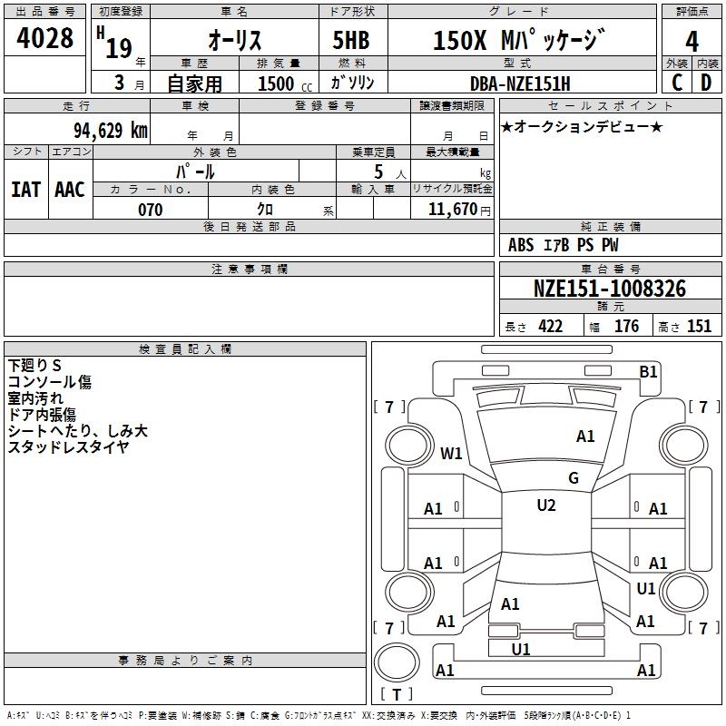 TOYOTA AURIS 150X M PACKAGE - лот 4028
