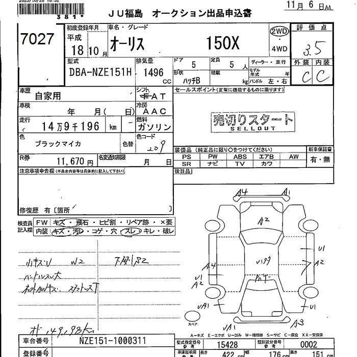 TOYOTA AURIS 150X - лот 7027