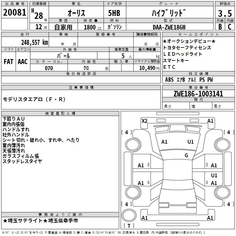 TOYOTA AURIS HYBRID - лот 20081