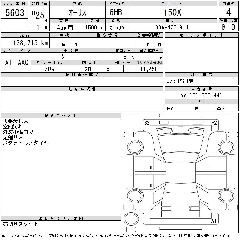 TOYOTA AURIS 150X - лот 5603