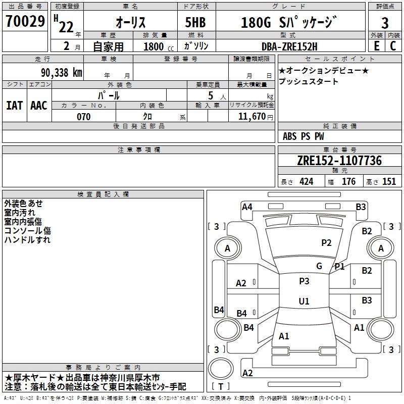 TOYOTA AURIS - лот 70029