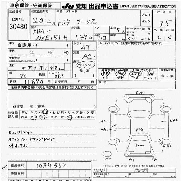 TOYOTA AURIS - лот 30480