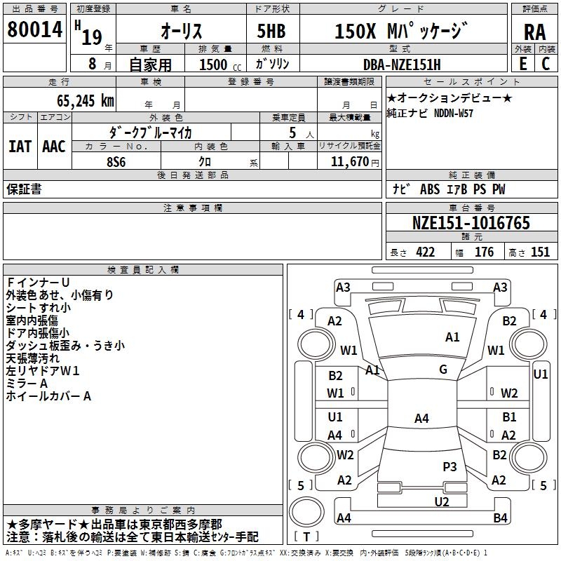 TOYOTA AURIS 150X M package - лот 80014