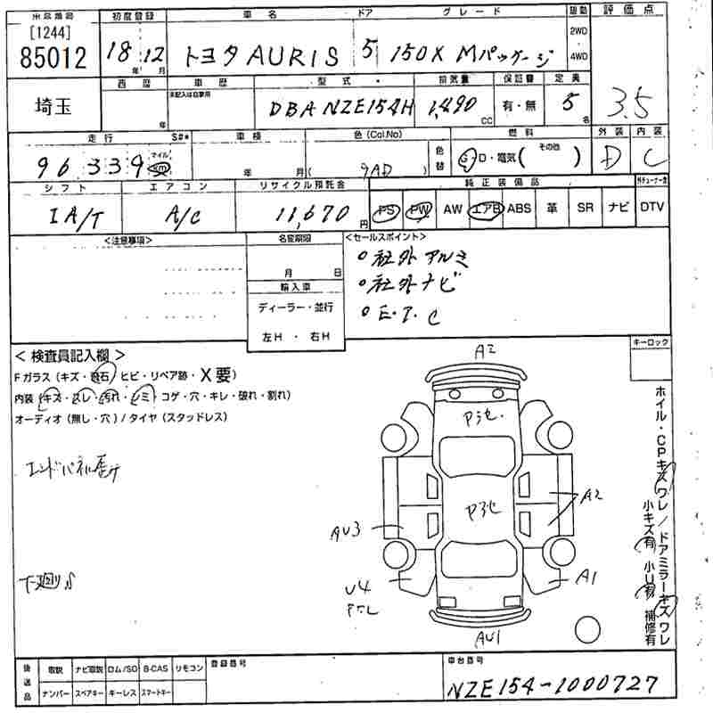 TOYOTA AURIS 150X_M package - лот 85012