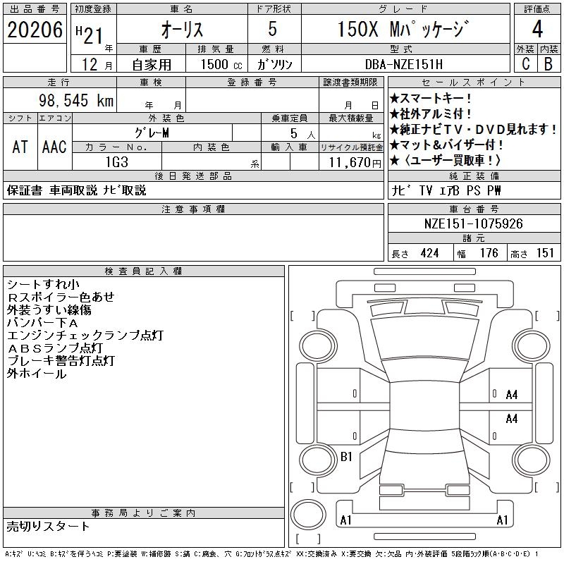 TOYOTA AURIS 150X M package - лот 20206