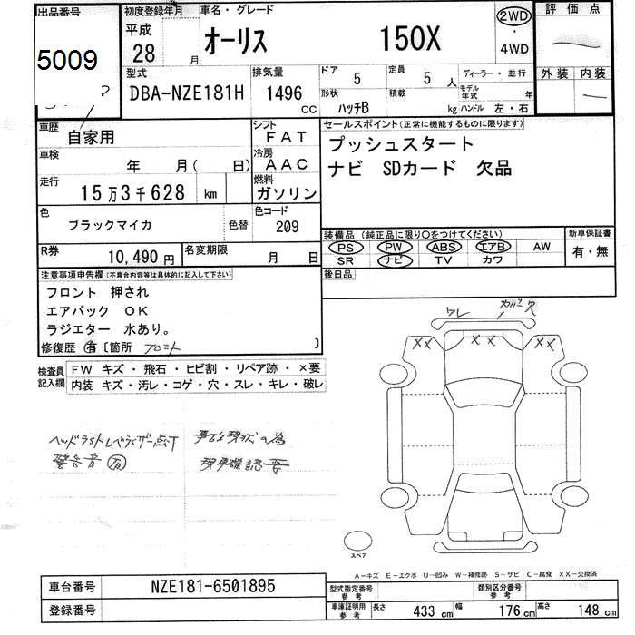 TOYOTA AURIS - лот 5009