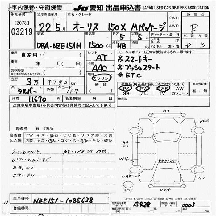 TOYOTA AURIS - лот 3219