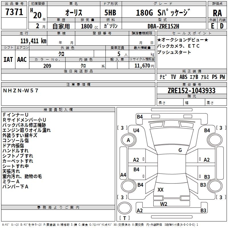 TOYOTA AURIS - лот 7371