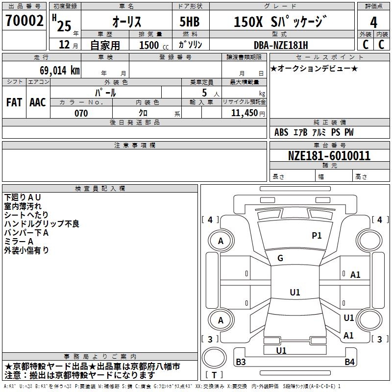 TOYOTA AURIS 150X S package - лот 70002