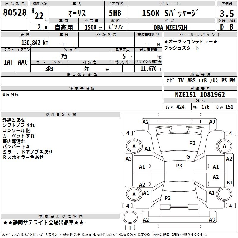 TOYOTA AURIS - лот 80528