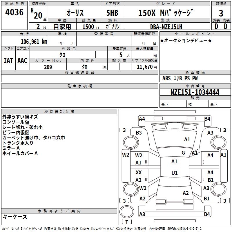 TOYOTA AURIS - лот 4036