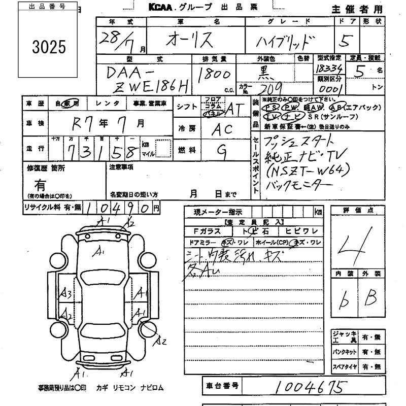 TOYOTA AURIS - лот 3025