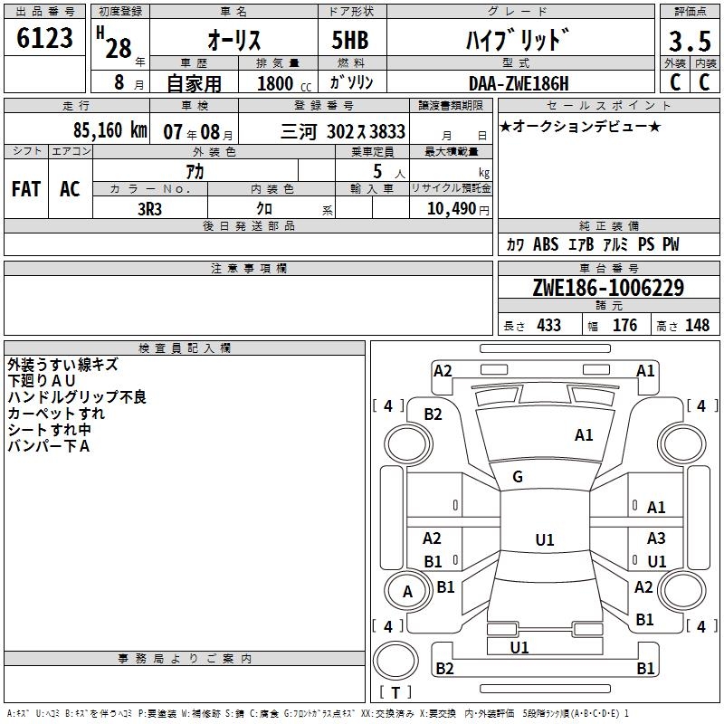 TOYOTA AURIS - лот 6123
