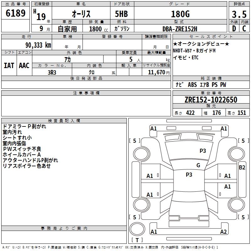 TOYOTA AURIS - лот 6189