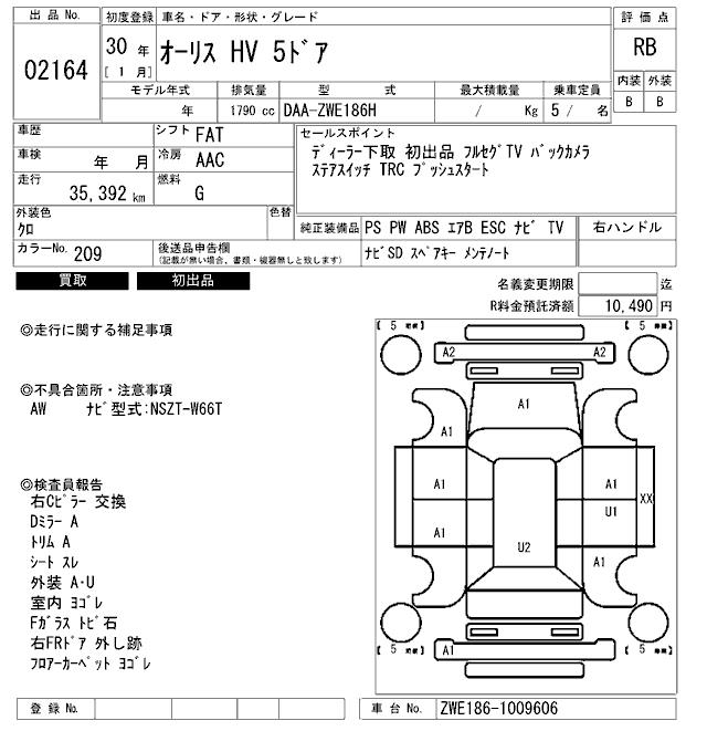 TOYOTA AURIS - лот 2164