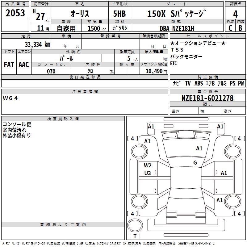 TOYOTA AURIS - лот 2053