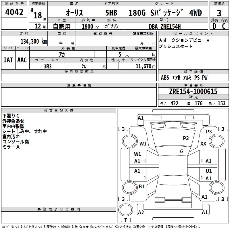 TOYOTA AURIS - лот 4042
