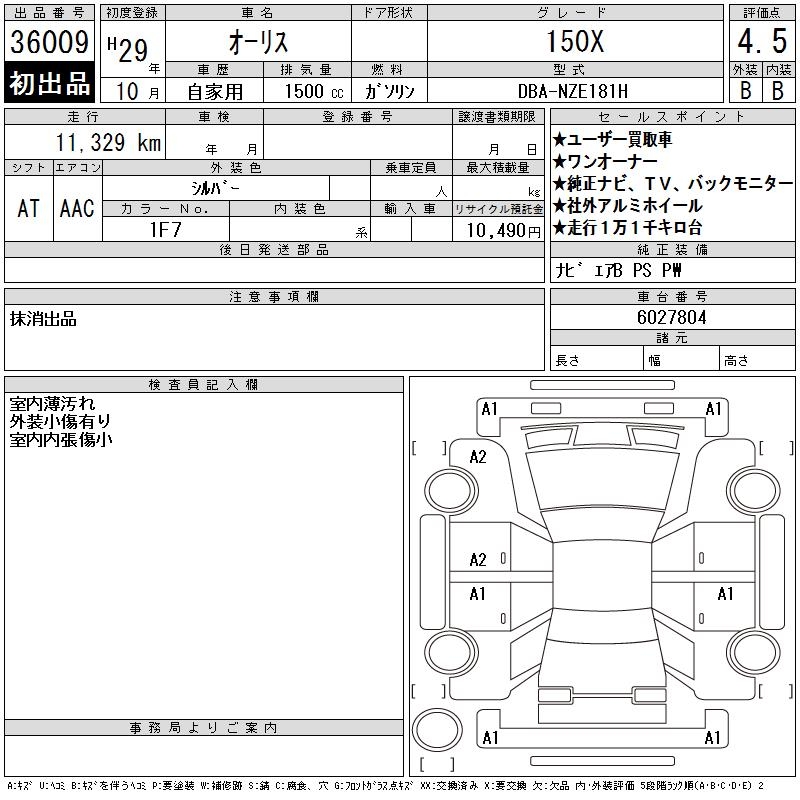 TOYOTA AURIS - лот 36009