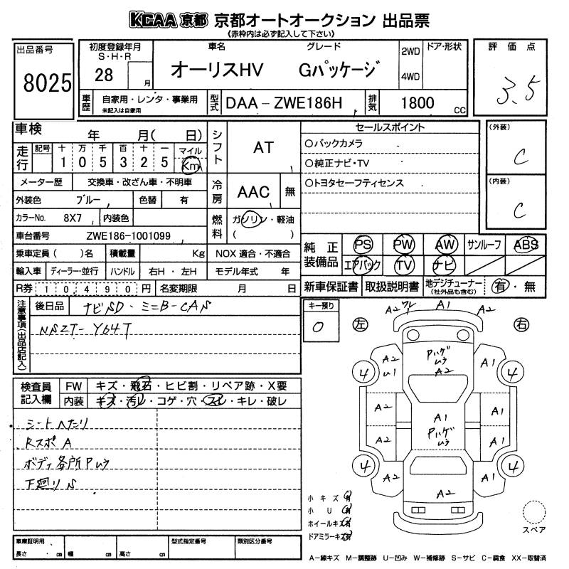 TOYOTA AURIS - лот 8025