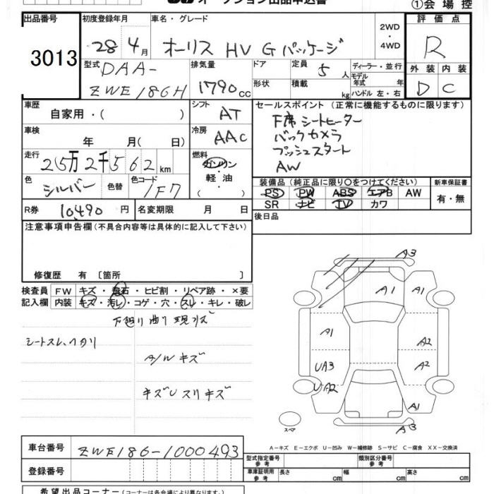 TOYOTA AURIS - лот 3013