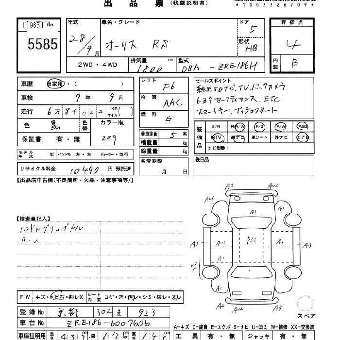 TOYOTA AURIS RS - лот 5585