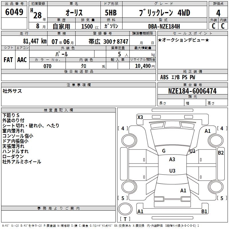 TOYOTA AURIS - лот 6049