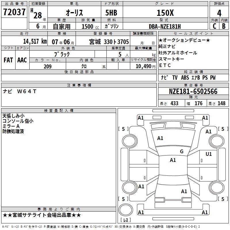 TOYOTA AURIS - лот 72037