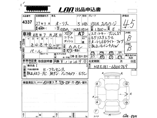 TOYOTA AURIS - лот 4337