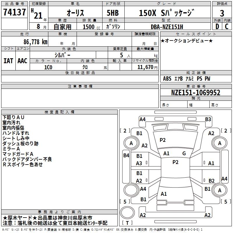 TOYOTA AURIS - лот 74137