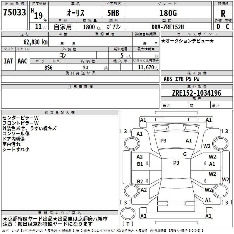 TOYOTA AURIS - лот 75033