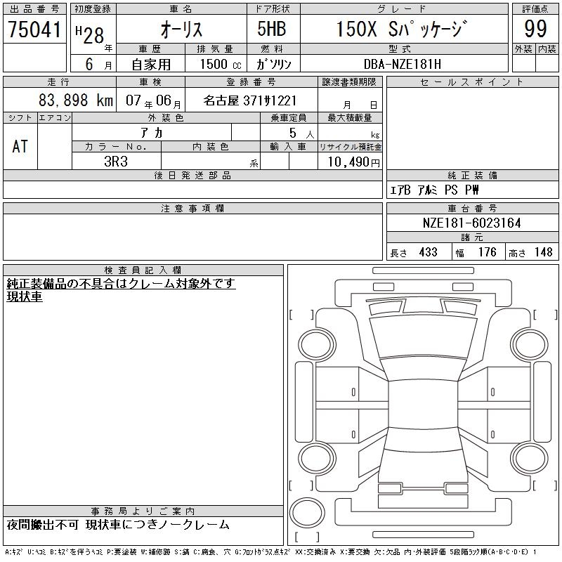 TOYOTA AURIS - лот 75041