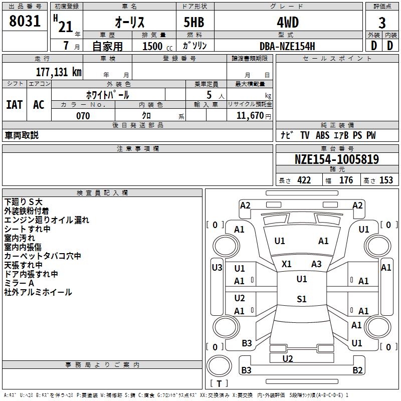 TOYOTA AURIS - лот 8031