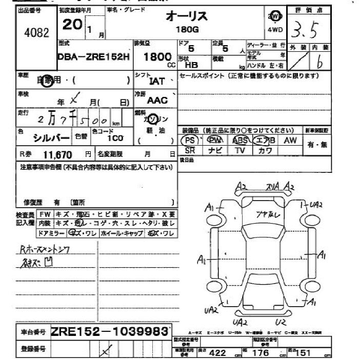 TOYOTA AURIS - лот 4082