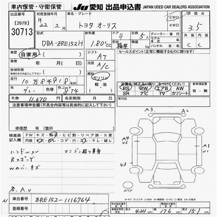 TOYOTA AURIS - лот 30713