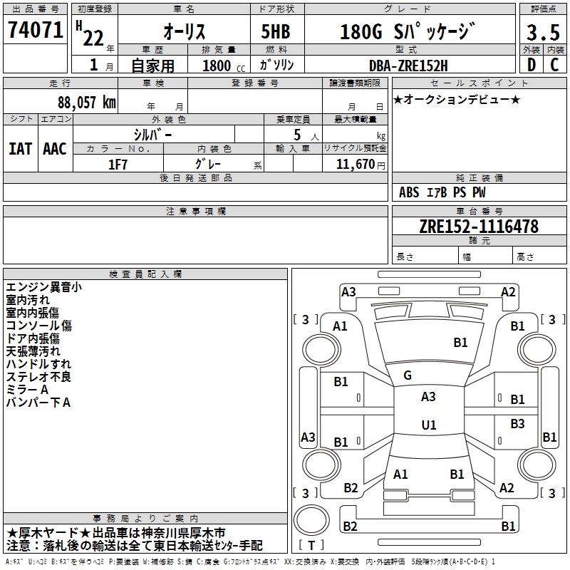 TOYOTA AURIS - лот 74071