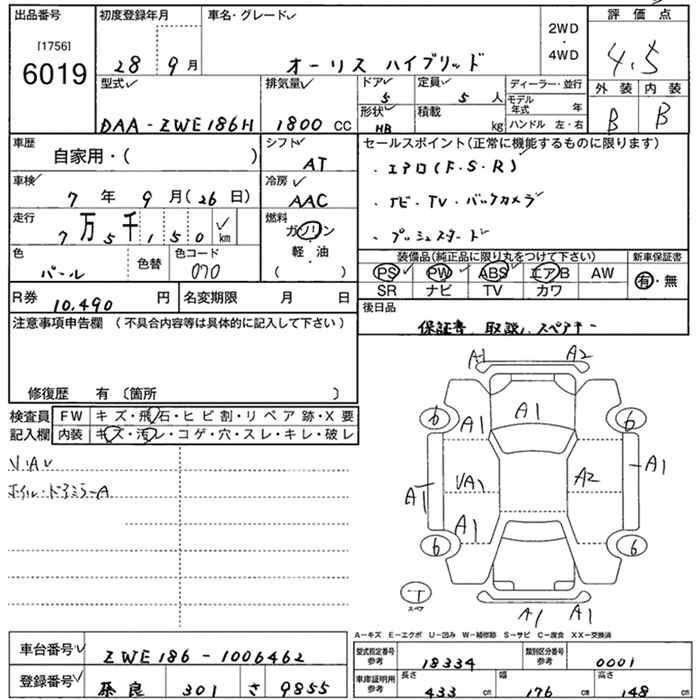TOYOTA AURIS - лот 6019