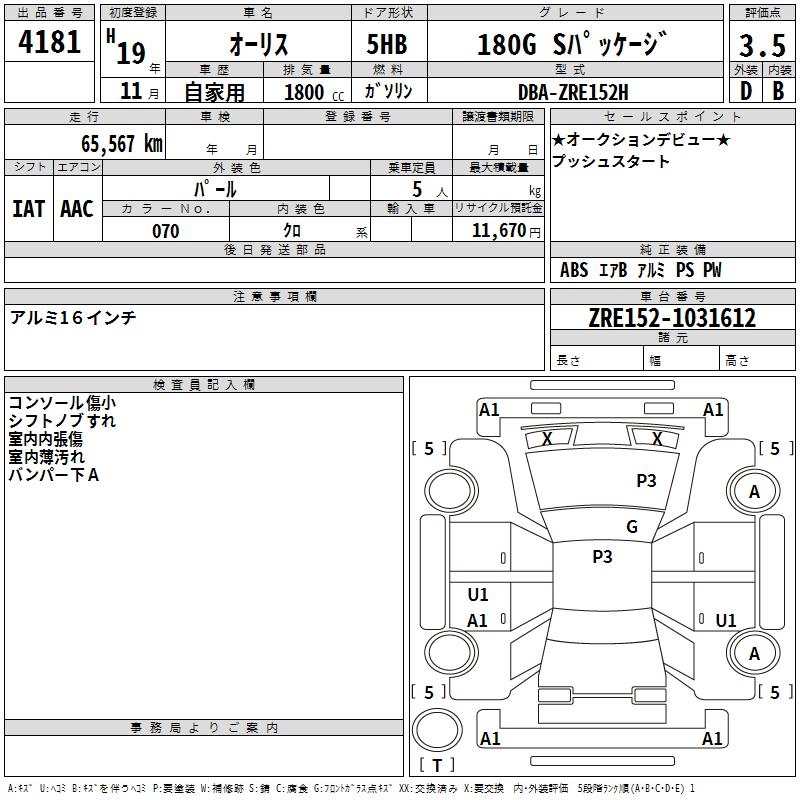 TOYOTA AURIS - лот 4181