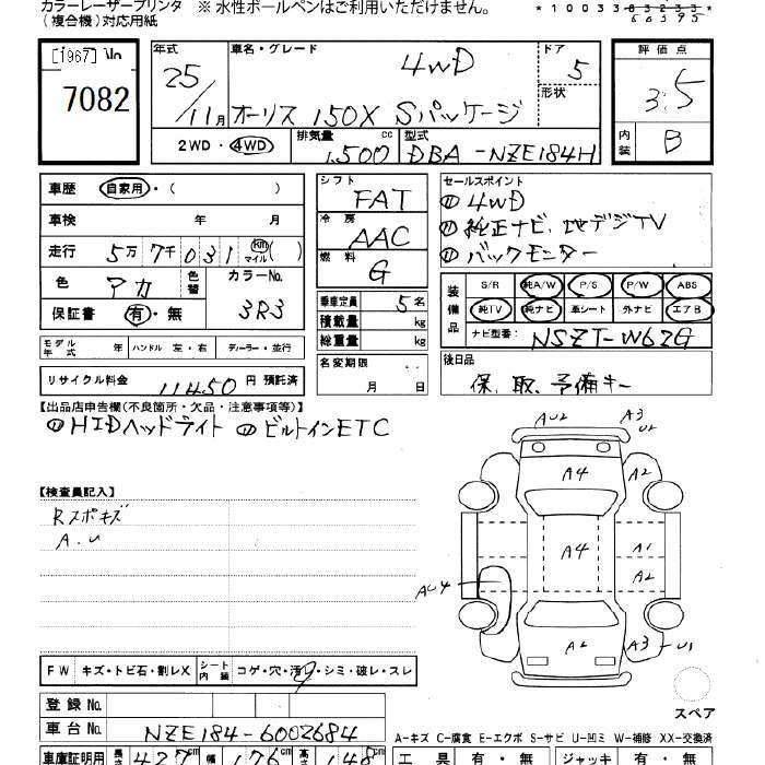 TOYOTA AURIS 4WD 150X S-PKG - лот 7082