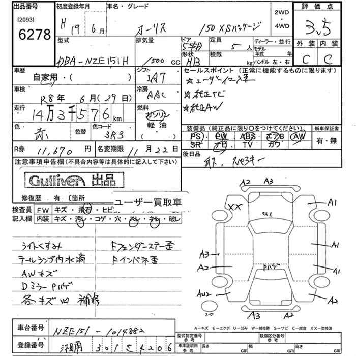 TOYOTA AURIS - лот 6278