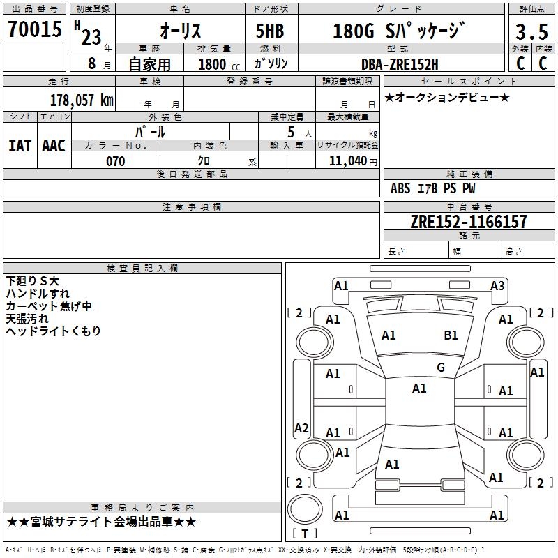 TOYOTA AURIS - лот 70015