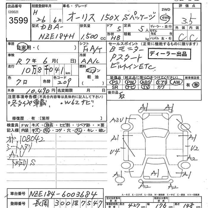TOYOTA AURIS - лот 3599