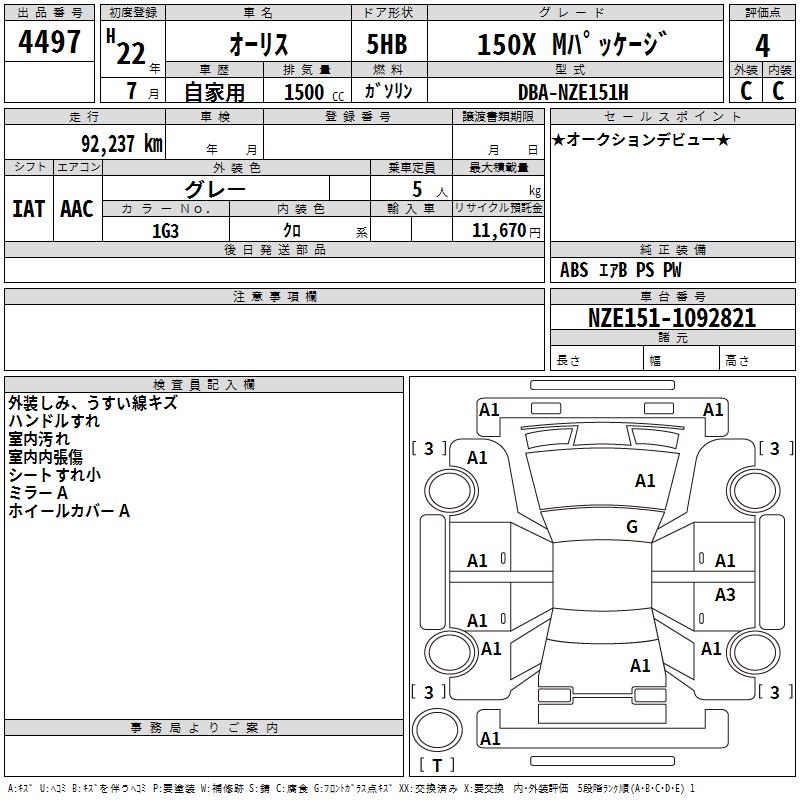 TOYOTA AURIS - лот 4497