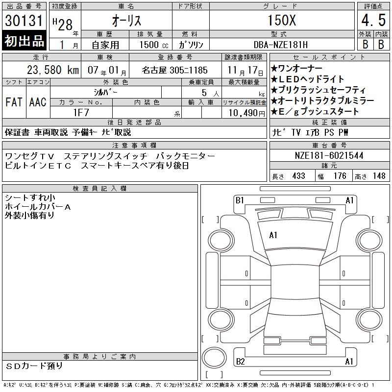 TOYOTA AURIS - лот 30131
